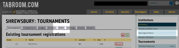 You should click each one to verify they are correct. If anything on this screen is wrong, please contact help@tabroom.com or the National Office at info@speechanddebate.org with details.