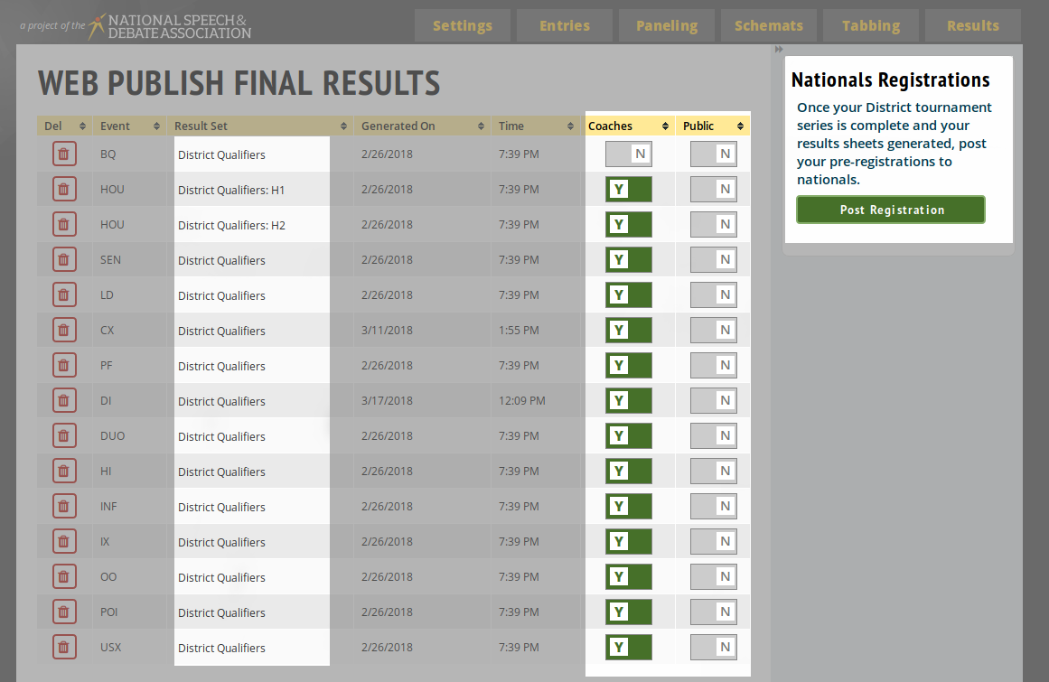 If you ran your tournament on Tabroom, you can post your Nationals registration and results directly from your District tournament.