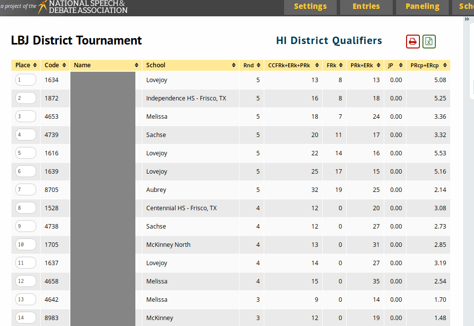 You should also see a list of any auto-qualifiers in your district on this sheet as marked. Auto-qualifiers cannot be vacated by you, though the coach can refuse those entries in the Nationals registration process.