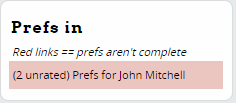 As a coach, you can access the prefs for all of your entries by going to the Prefs tab, which will appear in red if you have any incomplete pref sheets. If necessary, select the relevant Judge Group from the menu on the sidebar, then, select the pref sheet you want to edit: