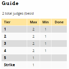 If using tiers, the sidebar will show you how many judges you currently have in each tier, and whether you have the correct number of judges in each: