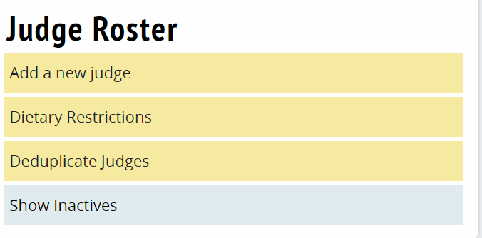 To keep track of your judges dietary preferences, you can use the "Dietary Restrictions" link on the right - it will take you to the same page as for your student roster.