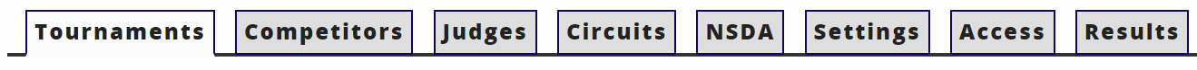 When your Tabroom account is linked as the administrator for a school, you will see a set of tabs when you log-in that correspond to the main school admin functions: