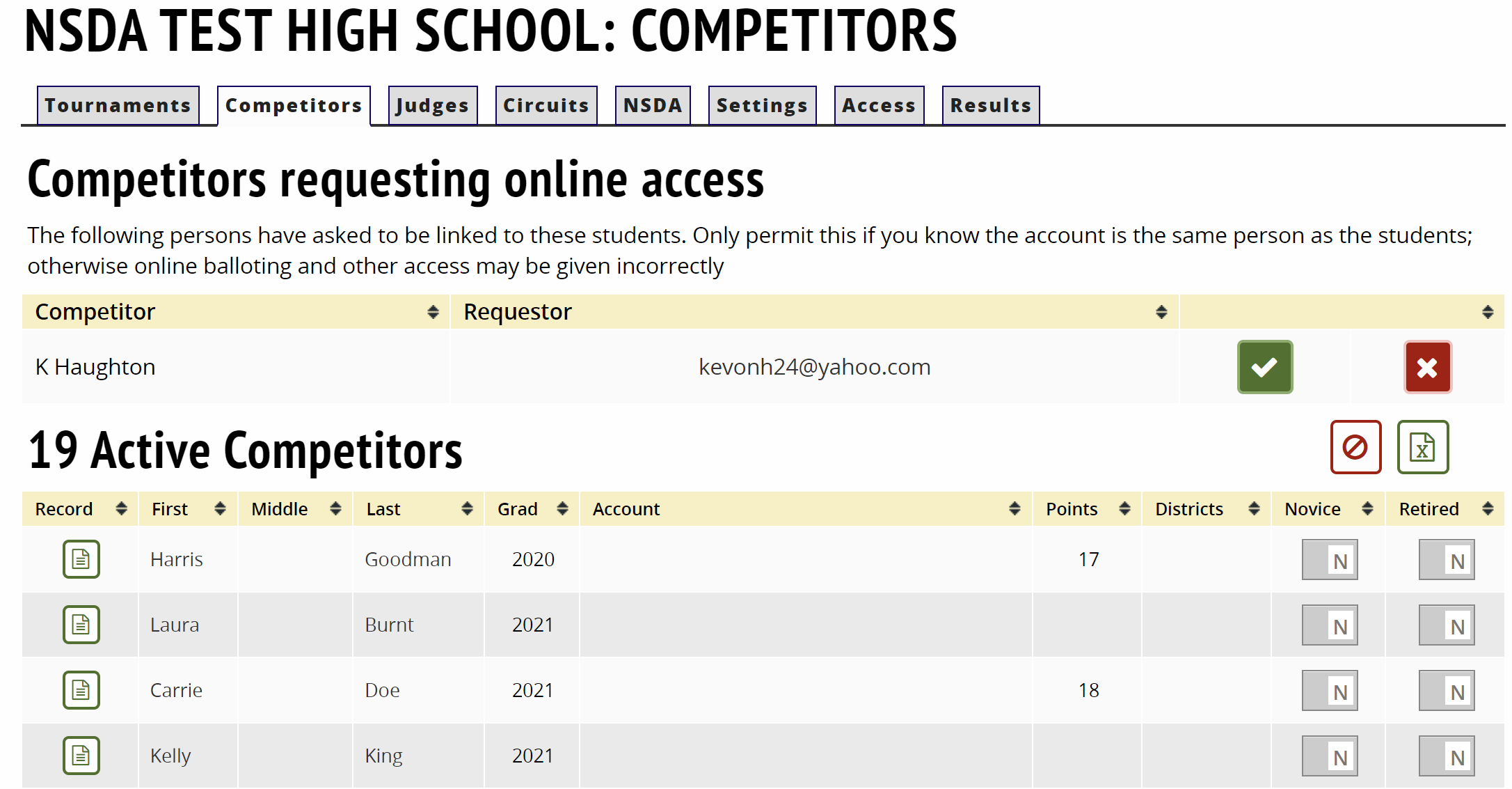 You will see a list of Tabroom accounts with access to your school ("chapter").