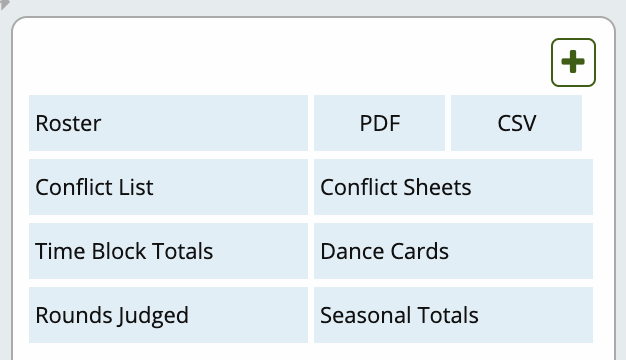 Dance Cards - Printout for each judge that lists their judging assignments.