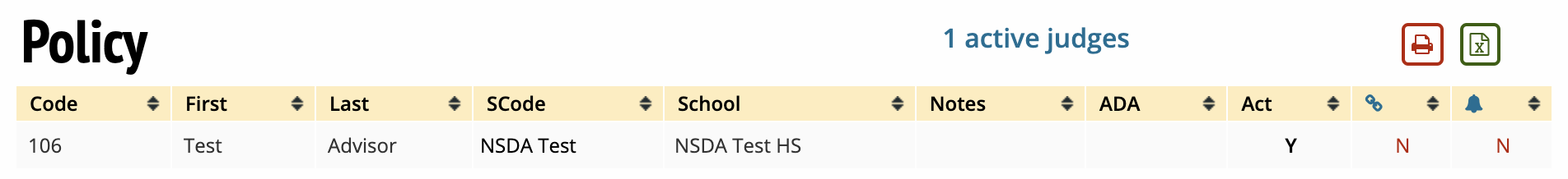 Chain Link - Signifies whether a judge has a linked Tabroom account or not.