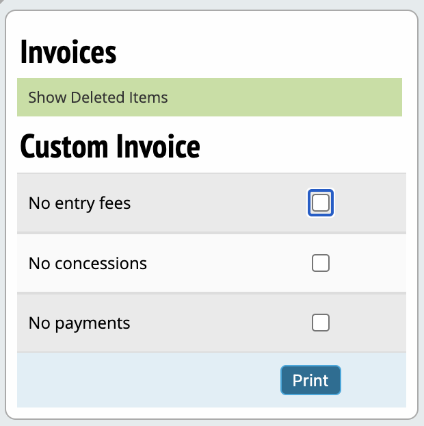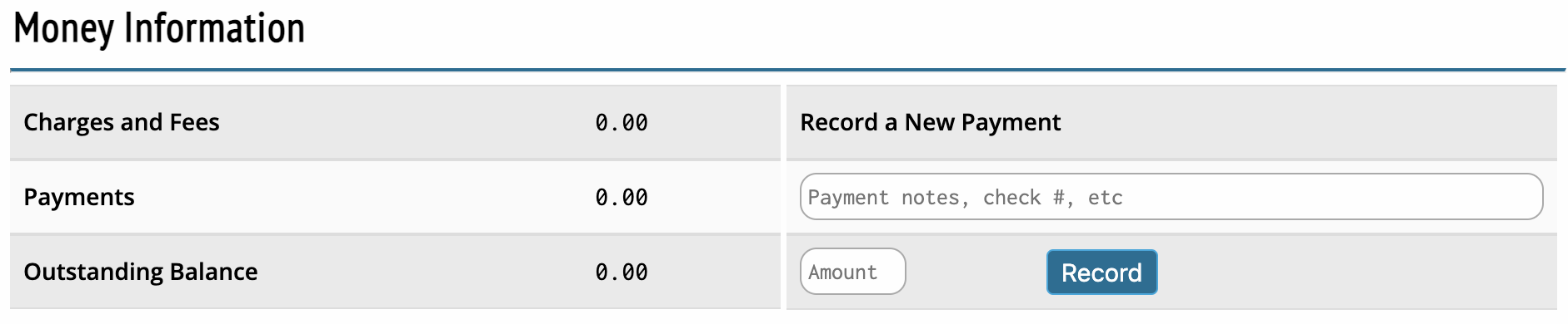 Record a Payment - Allows you to enter information for new payments that have been made for a tournament.