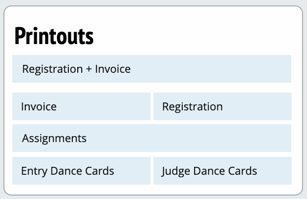 Options for printing out specific elements of a school's entry. Each button takes you to a different PDF.
