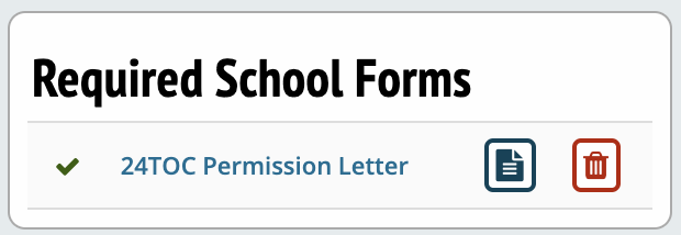 Tracks whether a school has uploaded required forms and allows you to upload the forms manually