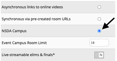Remember—The NSDA Campus rooms have to be purchased in advance and assigned to the correct day of your tournament. Detailed Instructions for Setting Up Asynchronous Speech Judging in Tabroom.com