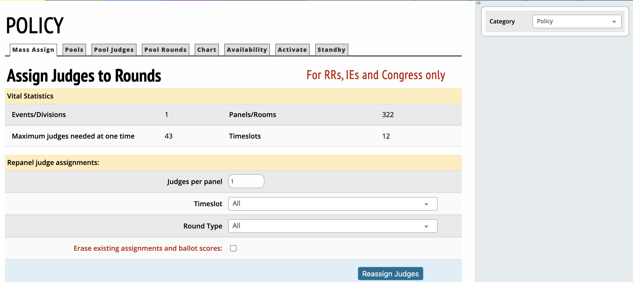 Mass Assign should only be used if you are assigning judges in Congress, speech events, or round robins.