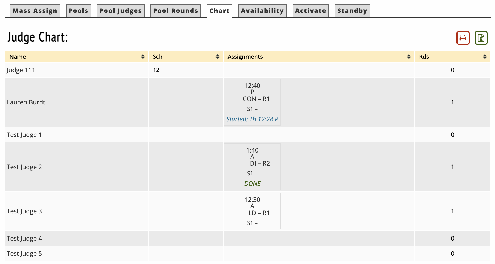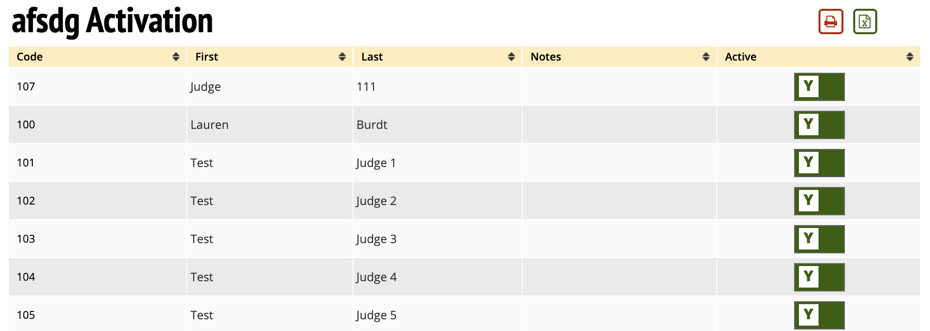 Allows you to mark judges as active for placement or not by toggling between Y or N.