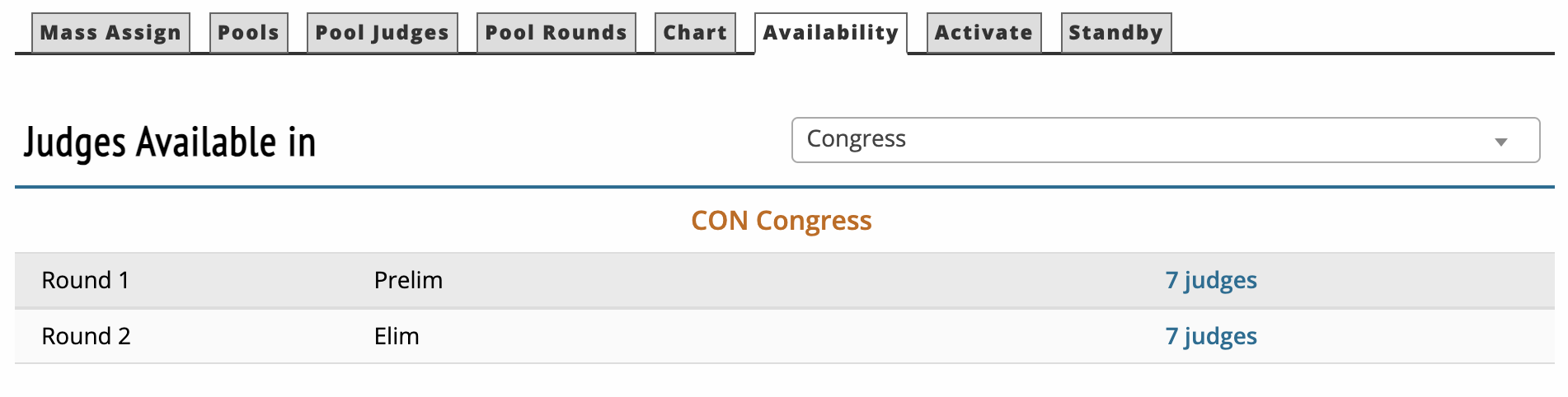 Clicking a judge name on the right hand side will move them into the selected judge pool.