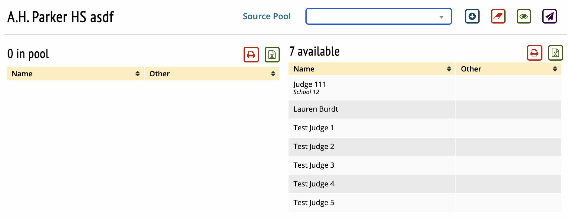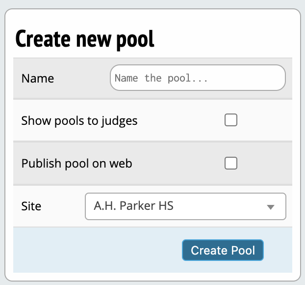 Pool - Menu to select from the judge pools that you created in the Pools tab.