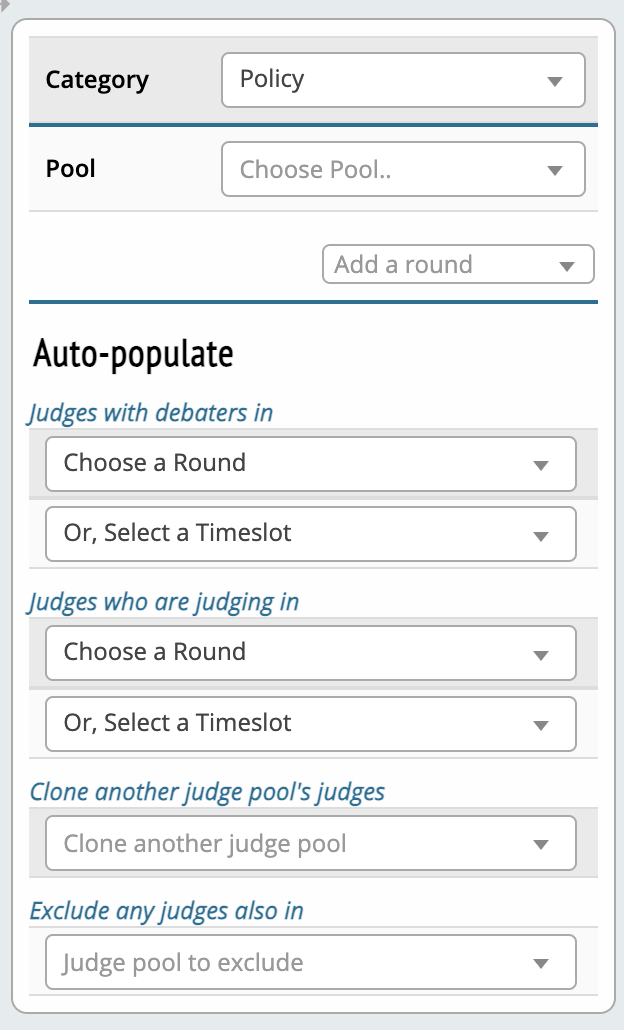 Auto-populate - Menu of options to mass pull judges into a judge pool based on the criterion you select.