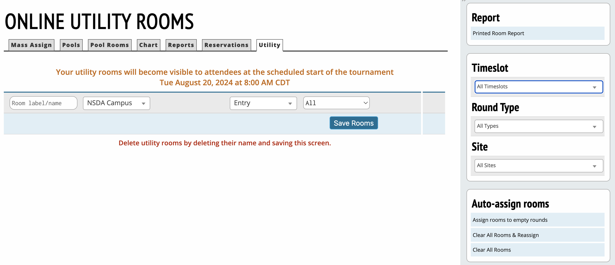 The "Report" tab shows you information about individual rooms, including which rounds are scheduled in that room and which room pools the room is in.