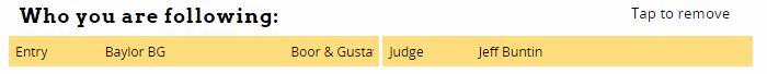 Once you are following an entry/judge, they will appear on your Live Updates tab in yellow: