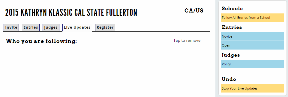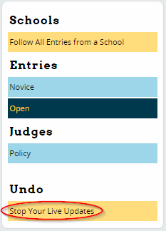 To stop following an entry or judge, simply click the item in your list on the Live Updates tab, and they will be removed.