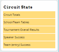Circuit Totals will show you a broad overview of the results from the circuit, such as the number of participating schools, students, and judges, and the number of tournament entries to date: