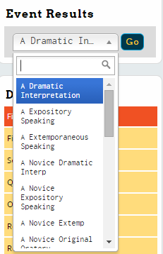 First, you should select the event you're interested in the "Event Results" dropdown, then click "Go:"