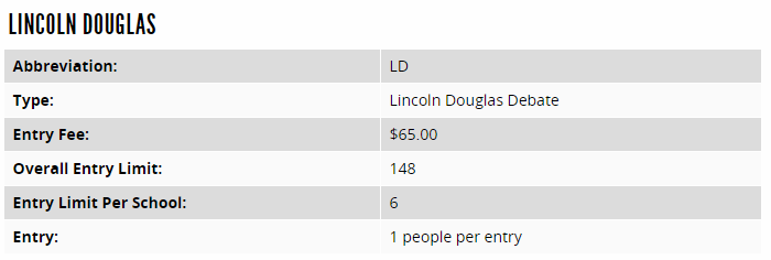 After you click Events/Divisions and then select an event, you will see information specific to that event, such as registration fees, entry limits, etc: