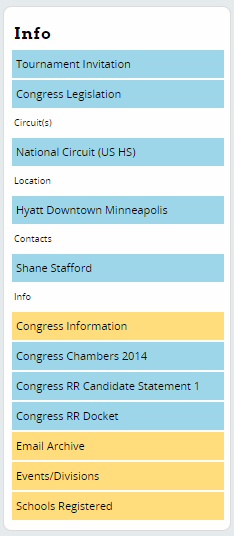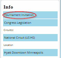The Invite tab will frequently have information about the tournament, dates and deadlines, hotel info, etc. If the tournament director has not pasted that information in, you should also look in the sidebar to see if there is a downloadable invitation: