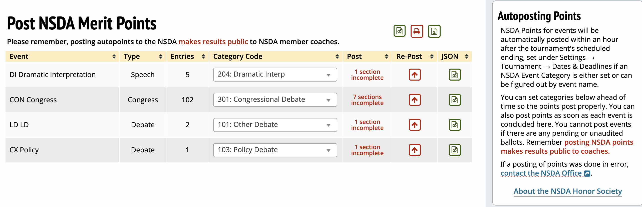 Update - Auto-posting of NSDA points in rounds with two judge panels does not configure correctly. Coaches will need to manually enter points for those rounds.