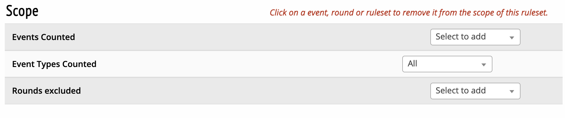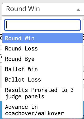 Number of events to count - This allows you to determine how many events you want to count toward a particular sweepstakes (Ex: If you are giving a Debate Sweepstakes award, you can choose LD, CX, and PF as the three events you want to count toward that sweepstakes award.)