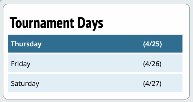 This panel is populated based on the dates entered under Settings -> Tournament